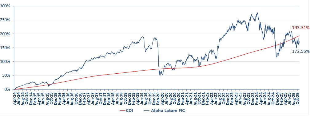 Busca de retornos superiores ao benchmark no longo prazo através de multi estratégias na renda fixa e variável além da busca através da diversificação regional.